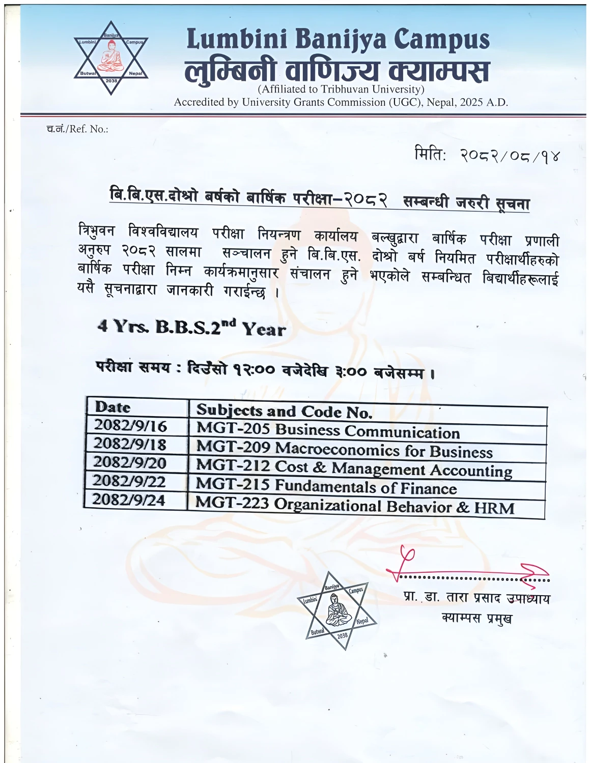 बि.बि.एस. दोश्रो बर्षको बार्षिक परीक्षा - २०८२ सम्बन्धी जरुरी सूचना