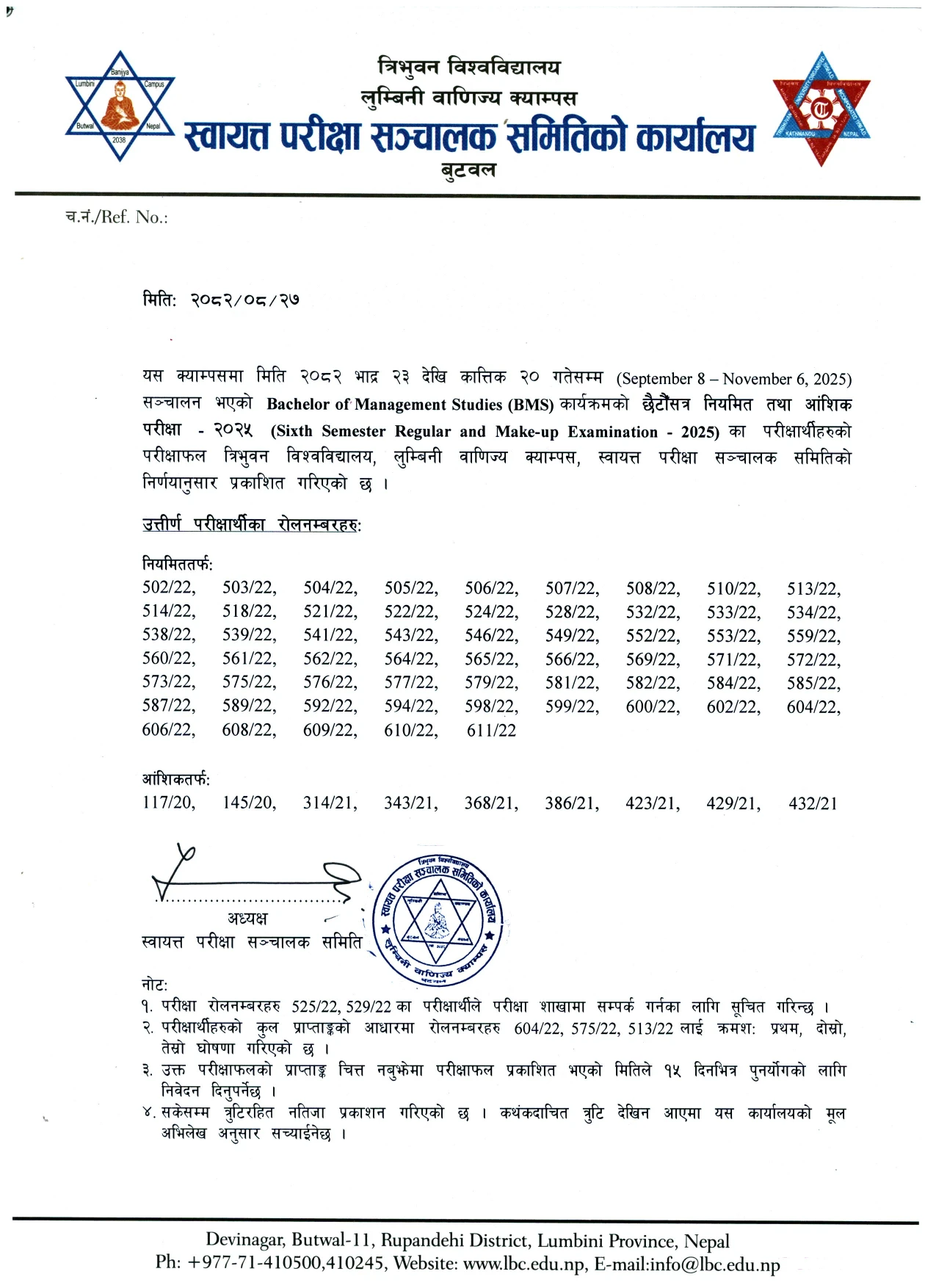 Notice Regarding BBM-A 6th Semester Regular and Make-up Examination Result Notice Regarding BBA-FA 6th Semester Regular and Make-up Examination Result Notice Regarding BMS 6th Semester Regular and Make-up Examination Result Notice Regarding Re-totaling of BMS 4th Semester वि.वि.एस. तेश्रो वर्ष आंशिक तर्फका परीक्षा दिने परीक्षार्थीहरुका लागी परीक्षा आवेदन फाराम भर्ने सूचना एम.बि. ए - बि.एफ प्रथम सेमेष्टरमा अध्ययनरत विद्यार्थीहरुलाई छात्रवृत्तिको लागि आवेदन फारम भर्ने सम्बन्धि सूचना बि.बि.ए. एफ. ए प्रथम सेमेष्टरमा अध्ययनरत विद्यार्थीहरुलाई छात्रवृत्तिको लागि आवेदन फारम भर्ने सम्बन्धी जरुरी सूचना MBS and MBS-F छात्रवृत्ति छनोट सम्बन्धी सूचना MBA-BF (Fall) तेस्रोसत्र तथा प्रथमसत्र सत्रान्त परीक्षाको नियमित तथा आंशिक परीक्षा फारम भर्ने सम्बन्धी सूचना MBA-BF चौथोसत्र नियमित तथा आंशिक परीक्षाको परिक्षा तालिका - २०२६ MBS-F चौथोसत्र नियमित तथा आंशिक परीक्षाको परिक्षा तालिका - २०२६ BMS आठौँसत्र नियमित तथा आंशिक परीक्षाको परिक्षा तालिका - २०२६ BBM-A आठौँसत्र नियमित तथा आंशिक परीक्षाको परिक्षा तालिका - २०२६ BBA-FA आठौँसत्र नियमित तथा आंशिक परीक्षाको परिक्षा तालिका - २०२६ BBS 2nd Year Examination Schedule 2082 BMS AND BBM-A 8TH Semester Mid-Term Examination 2082 BBA-FA 8th Semester Pre-Viva Notice बी.बी.ए–एफ.ए(BBA-FA) आठौँ सेमेस्टरमा अध्ययनरत विद्यार्थीहरूका लागि मध्यावधि (मिड–टर्म) परीक्षाको कार्यतालिका सम्बन्धी जरुरी सूचना। MBS-(Proposal Defense, Pre-Viva र Viva-Voce Examination)सम्बन्धी जरुरी सूचना। बि.बि.एस. दोश्रो बर्षको बार्षिक परीक्षा - २०८२ सम्बन्धी जरुरी सूचना त्रि.वि. नाम दर्ता (Registration) फारम भर्ने म्याद थप सम्बन्धी सूचना BBA-FA कार्यक्रमको चौथोसत्र नियमित तथा आंशिक परीक्षा - २०२५ को परीक्षाफल प्रकाशित BBM-A कार्यक्रमको चौथोसत्र नियमित तथा आंशिक परीक्षा - २०२५ को परीक्षाफल प्रकाशित BMS कार्यक्रमको चौथोसत्र नियमित तथा आंशिक परीक्षा - २०२५ को परीक्षाफल प्रकाशित छात्रवृत्तिका लागि अन्तर्वार्ता सम्बन्धी जरुरी सूचना। MBS-F चौथोसत्र तथा दोस्रोसत्र सत्रान्त परिक्षाको नियमित तथा आंशिक परीक्षा फारम भर्ने सम्बन्धी सूचना MBA-BF चौथोसत्र तथा दोस्रोसत्र सत्रान्त परिक्षाको नियमित तथा आंशिक परीक्षा फारम भर्ने सम्बन्धी सूचना BBA-FA आठौँसत्र सत्रान्त परिक्षाको नियमित तथा आंशिक परीक्षा फारम भर्ने सम्बन्धी सूचना BMS आठौँसत्र सत्रान्त परिक्षाको नियमित तथा आंशिक परीक्षा फारम भर्ने सम्बन्धी सूचना BBM-A आठौँसत्र सत्रान्त परिक्षाको नियमित तथा आंशिक परीक्षा फारम भर्ने सम्बन्धी सूचना मङ्सिर १ गतेदेखि क्याम्पस सञ्चालन हुने समय अपडेट गरिएको सम्बन्धी जरूरी सूचना। Notice Regarding MBS-F 4th Semester Proposal Defense - 2082 Notice Regarding MBS Thesis 2082 LBC BUSINESS INCUBATION PROGRAM 2025 बि.बि.एस. दोश्रो बर्षको स्थगित भएको आंशिक तथा मौका परीक्षा - २०८२ सम्बन्धी जरुरी सूचना Notice Regarding B.B.M 2ND AND 7TH SEMESTER EXAM ROUTINE 2082 Notice Regarding M.B.S SPECIAL CHANCE EXAM ROUTINE 2082 Bachelor of Management Studies (BMS) Second Semester Regular and Makeup Examination Result -2025 Bachelor of Business Ma